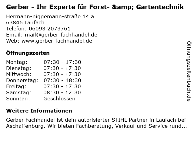 Branchen & Suchbegriffe zu Gerber - Ihr Experte für Forst- & Gartentechnik:experte, forst, gartentechnik, gerber, geschäft für arbeitskleidung, ihr, kleinmotorenreparatur, maschinenwerkstatt, rasenpflegedienst, reparaturservice für rasenmäher, schleif- und schärfservice |