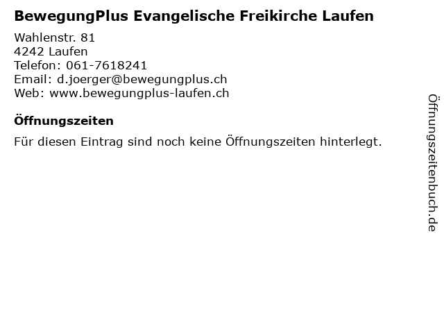 | BewegungPlus Evangelische Freikirche Laufen anrufen | |