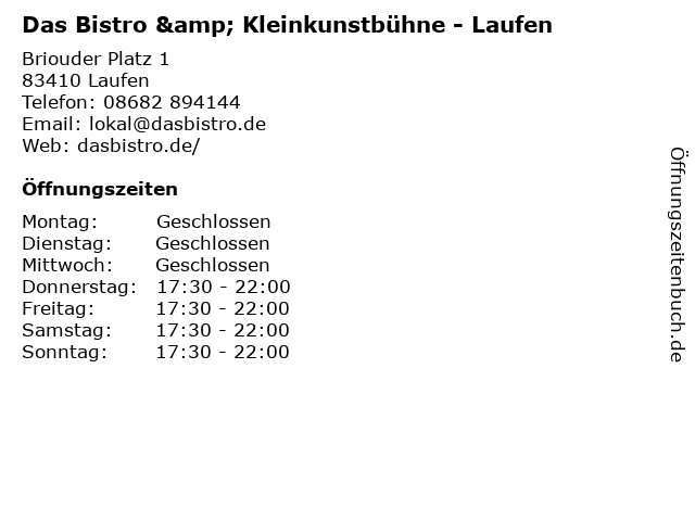 Branchen & Suchbegriffe zu Das Bistro & Kleinkunstbühne - Laufen:bistro, essen, gastronomie, getränke, hauptgerichte, kleinkunstbühne, laufen, restaurant, salate, vorspeisen |