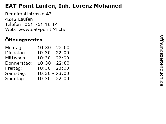Branchen & Suchbegriffe zu EAT Point Laufen, Inh. Lorenz Mohamed:eat, essenslieferung, fast food und take away, laufen, lorenz, mohamed, point, restaurants |