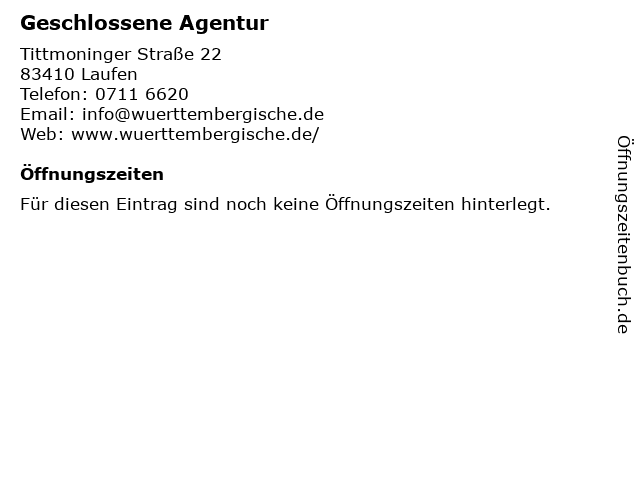 | Telefonnummer Geschlossene Agentur in Laufen (0711 6620) anrufen | |
