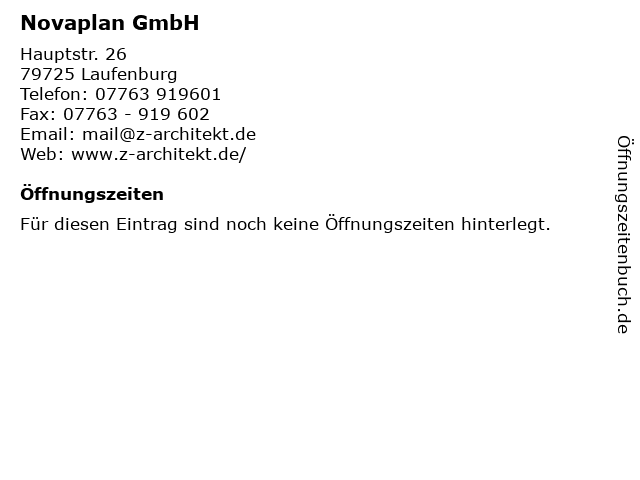 | Öffnungszeiten Novaplan GmbH in Laufenburg anzeigen | |