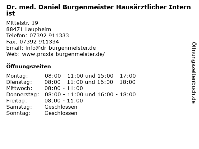 Branchen & Suchbegriffe zu Dr. med. Daniel Burgenmeister Hausärztlicher Internist:burgenmeister, daniel, dr., hausarztpraxis, hausärztlicher, internist, med. |