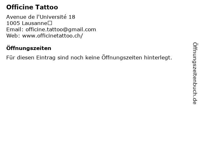 | Öffnungszeiten Officine Tattoo in Lausanne anzeigen | |