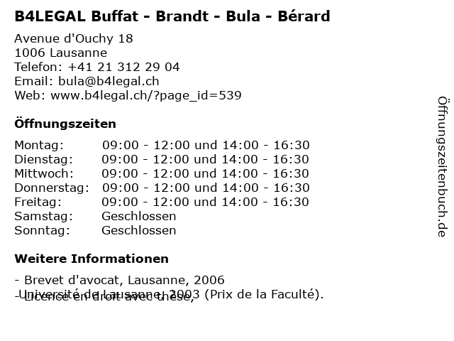 Branchen & Suchbegriffe zu B4LEGAL Buffat - Brandt - Bula - Bérard:avocat lausanne, b4legal, brandt, buffat, bula, bérard, droit administratif général, droit de l'exécution forcée, droit de la construction, droit de la construction et de la l'aménagement du territoire, droit de la famille, droit de la protection de l'adulte, droit de la protection de l'enfant, droit des contrats, droit du bail, droit du bail à ferme agricole, droit pénal |