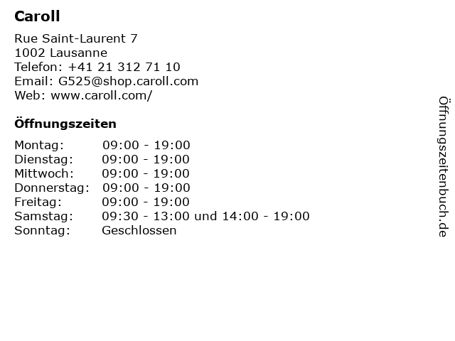 | Öffnungszeiten Caroll in Lausanne anzeigen | |