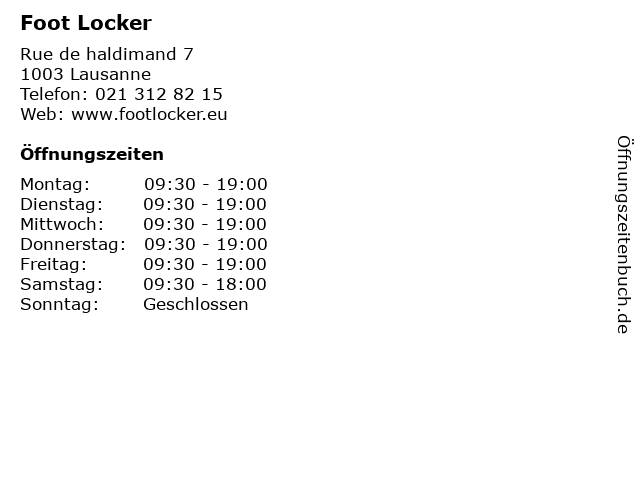 | Öffnungszeiten Foot Locker in Lausanne anzeigen | |