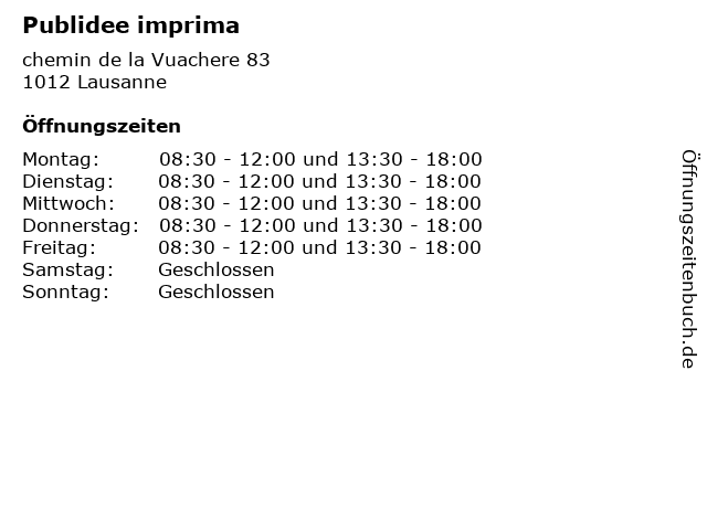 | Öffnungszeiten Publidee imprima in Lausanne anzeigen | |