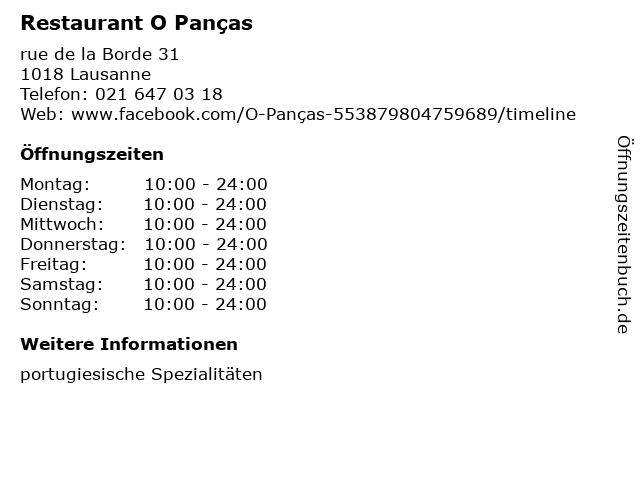 | Öffnungszeiten Restaurant O Panças in Lausanne anzeigen | |