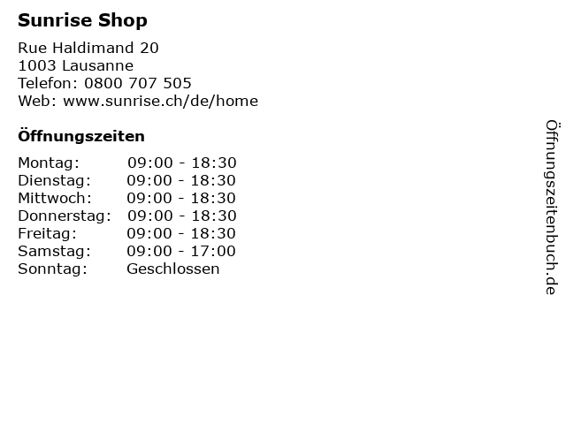 | Öffnungszeiten Sunrise Shop in Lausanne anzeigen | |
