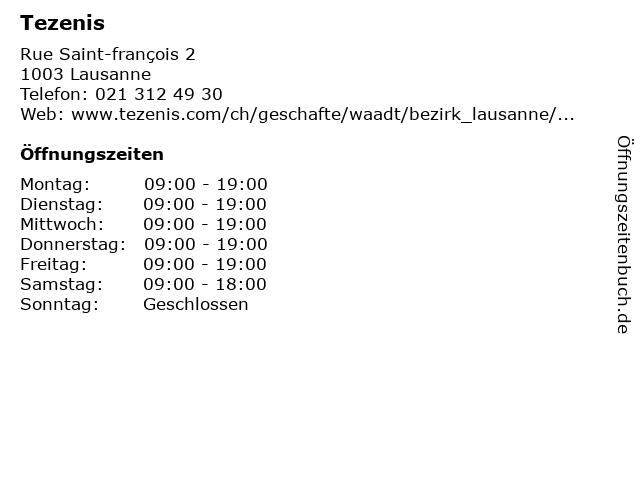 | Öffnungszeiten Tezenis in Lausanne anzeigen | |