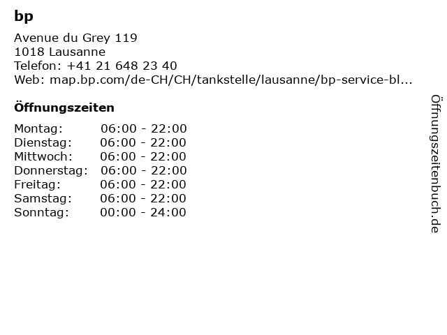 | Öffnungszeiten bp in Lausanne anzeigen | |