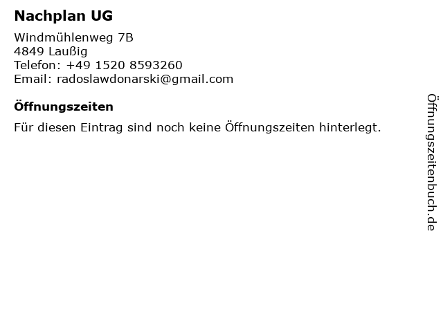 | Telefonnummer Nachplan UG in Laußig (+49 1520 8593260) anrufen | |