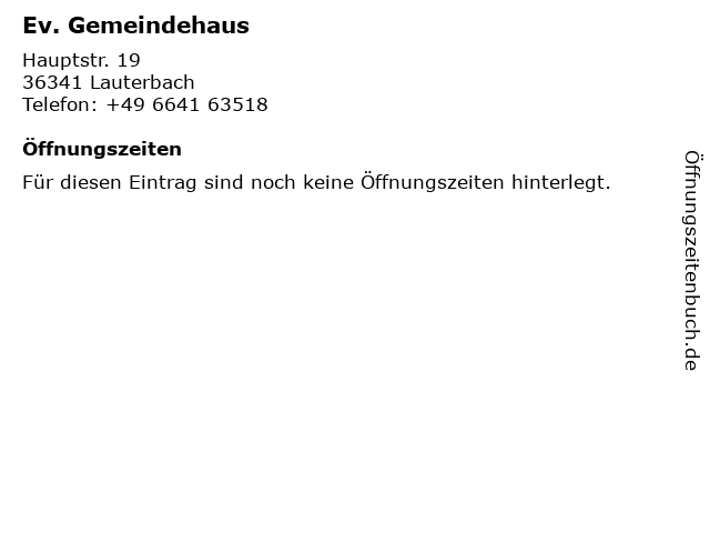 | Öffnungszeiten Ev. Gemeindehaus in Lauterbach anzeigen | |