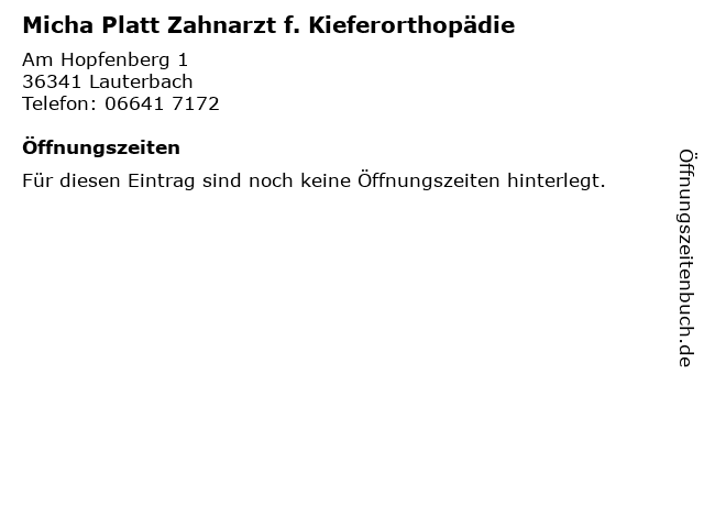 | Micha Platt Zahnarzt f. Kieferorthopädie anrufen | |