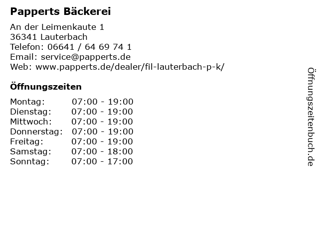 | Öffnungszeiten Papperts Bäckerei in Lauterbach anzeigen | |