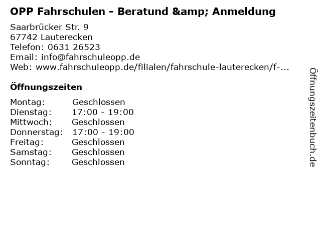 3 OPP Fahrschulen - Beratund & Anmeldung (Entfernung: 17,52 km) Hauptstraße 64a, 66879 Reichenbach-Steegen 6 |