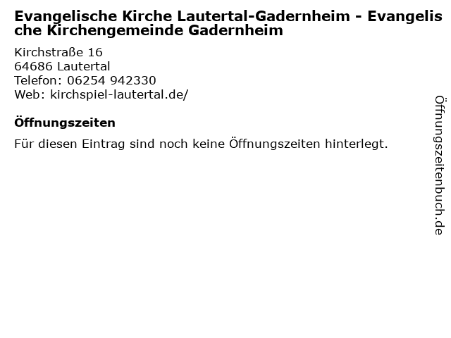 | Evangelische Kirche Lautertal-Gadernheim - Evangelische Kirchengemeinde Gadernheim anrufen | |