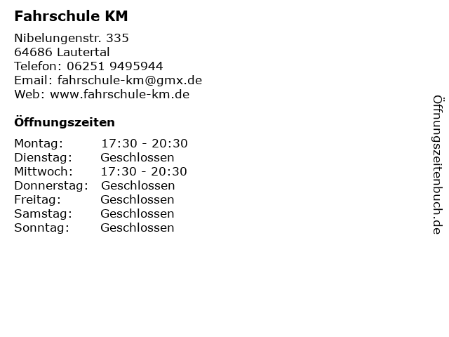 | Öffnungszeiten Fahrschule KM in Lautertal anzeigen | |