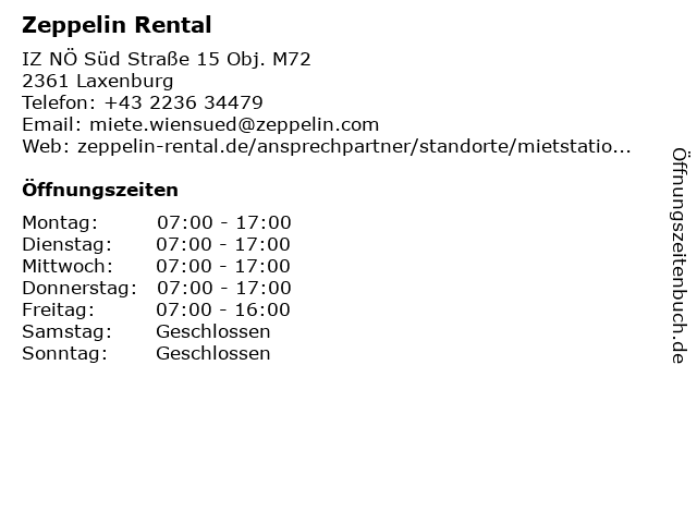 | Öffnungszeiten Zeppelin Rental in Laxenburg anzeigen | |