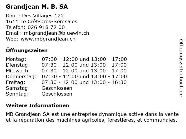 Branchen & Suchbegriffe zu Grandjean M. B. SA:anbieter für landwirtschaftsgeräte, b., grandjean, m., sa, traktorhändler |