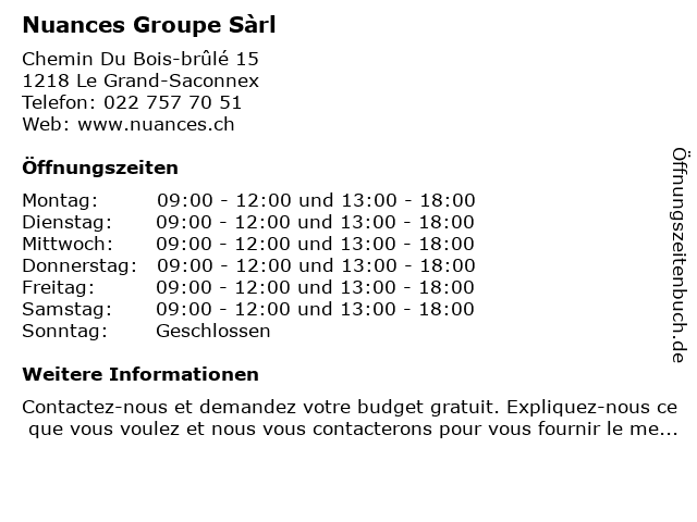 Branchen & Suchbegriffe zu Nuances Groupe Sàrl:groupe, nuances, sàrl |