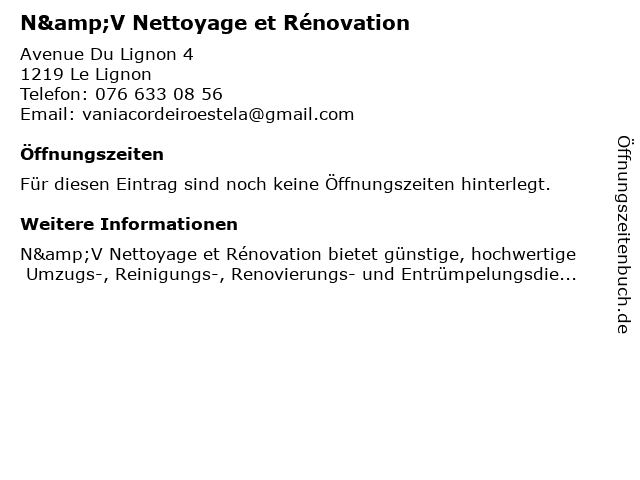 | N&V Nettoyage et Rénovation anrufen | |