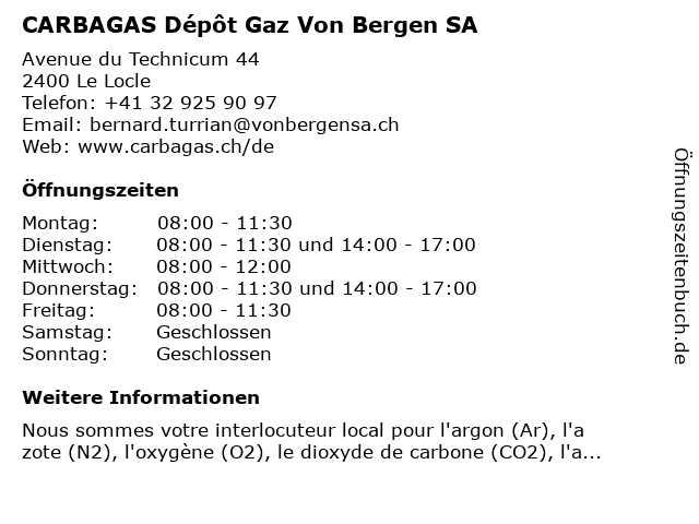 | Branchen & Suchbegriffe zu CARBAGAS Dépôt Gaz Von Bergen SA:acetylen, argon, ballongas, carbagas, co2 gasflasche, druckminderer, dépôt, gasflasche, gaz, helium, kohlendioxid, kohlensäure, minitop, propan, sa, sauerstoff, schutzgas, schweissgas, stickstoff, tauschflasche, technische gase, trockeneis, von, wasserstoff |
