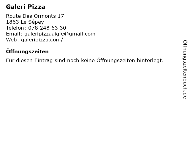 | Öffnungszeiten Galeri Pizza in Le Sépey anzeigen | |