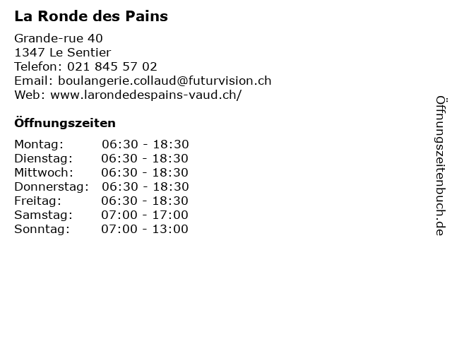 | Öffnungszeiten La Ronde des Pains in Le Sentier anzeigen | |