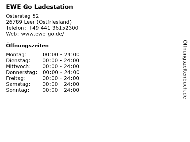 Öffnungszeiten EWE Go Ladestation in Leer (Ostfriesland) anzeigen