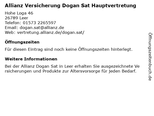 | Allianz Versicherung Dogan Sat Hauptvertretung anrufen | |