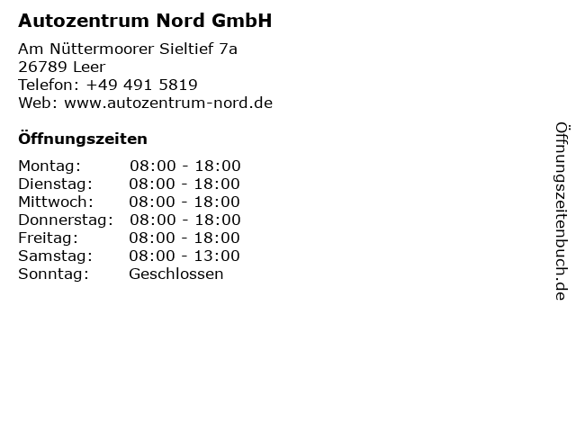 | Öffnungszeiten Autozentrum Nord GmbH in Leer anzeigen | |