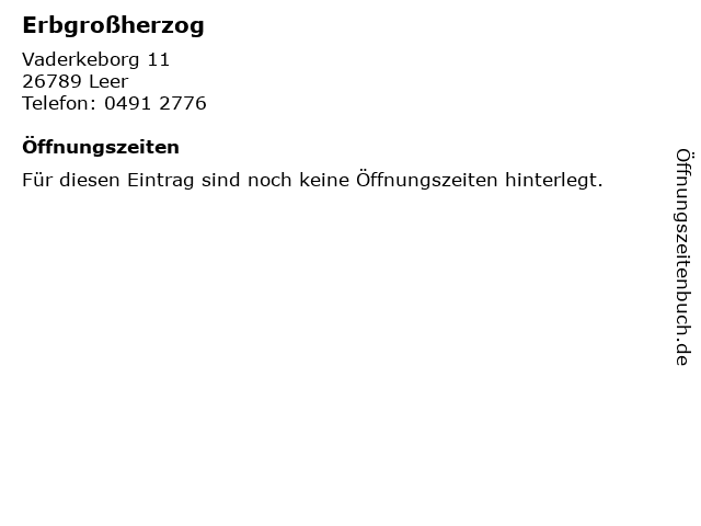 | Öffnungszeiten Erbgroßherzog in Leer anzeigen | |