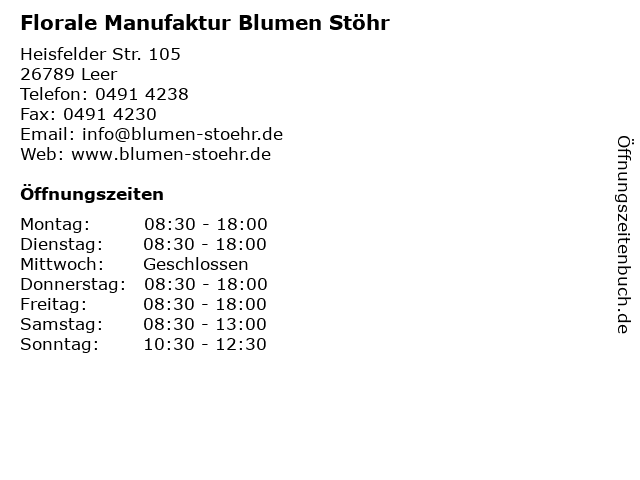 Öffnungszeiten Florale Manufaktur Blumen Stöhr in Leer anzeigen