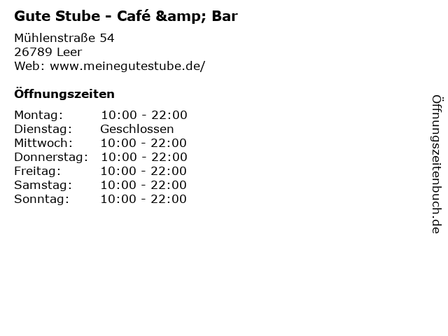 | Öffnungszeiten Gute Stube - Café & Bar in Leer anzeigen | |