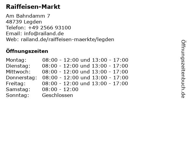 | Öffnungszeiten Raiffeisen-Markt in Legden anzeigen | |