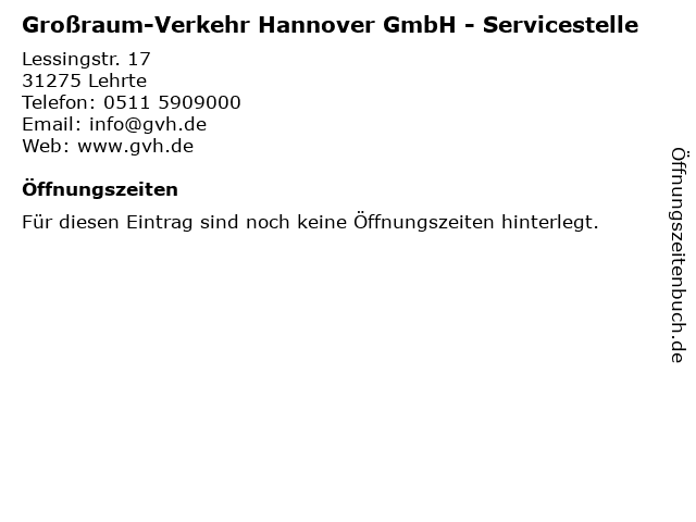 | Großraum-Verkehr Hannover GmbH - Servicestelle anrufen | |
