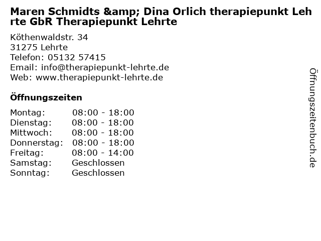 Branchen & Suchbegriffe zu Maren Schmidts & Dina Orlich therapiepunkt Lehrte GbR Therapiepunkt Lehrte:dina, gbr, lehrte, maren, orlich, schmidts, therapiepunkt |