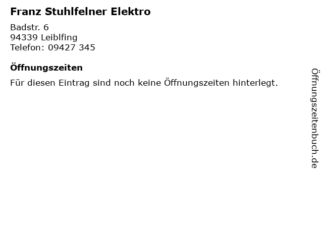 | Öffnungszeiten Franz Stuhlfelner Elektro in Leiblfing anzeigen | |