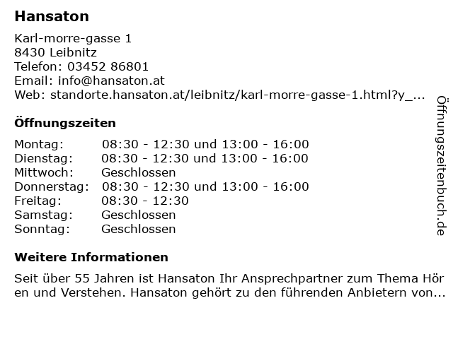 Hinweis: Seit über 55 Jahren ist Hansaton Ihr Ansprechpartner zum Thema Hören und Verstehen. Hansaton gehört zu den führenden Anbietern von Hörsystemen in Österreich.