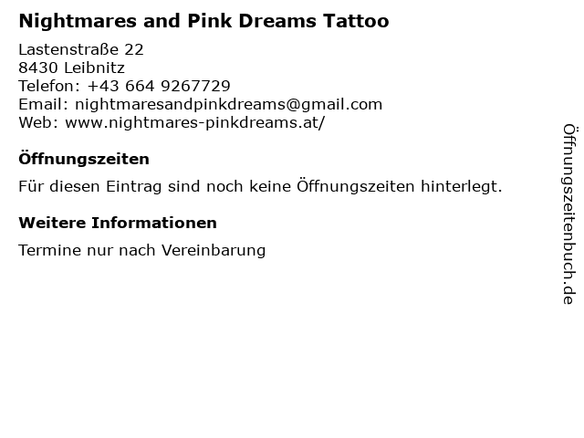 | Nightmares and Pink Dreams Tattoo anrufen | |