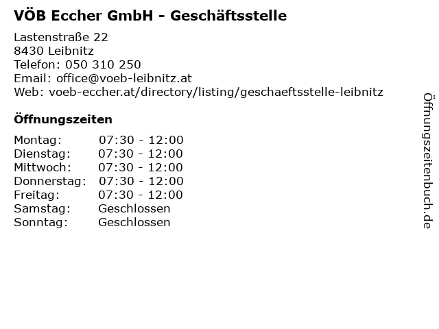 1 Mag. Kavsek Christina Allianz Agentur (Entfernung: 0,99 km) Dechant Thaller-Straße 32/2, 8430 Leibnitz 3 VÖB Eccher GmbH - Geschäftsstelle (Entfernung: 25,47 km) Obere Schmiedgasse 18, 8530 Deutschlandsberg 6 Uniqa Versicherungen - GeneralAgentur Pratter (Beratung | Service | KFZ-Zulassung) (Entfernung: 31,42 km) Kärntner Straße 149, 8053 Graz |