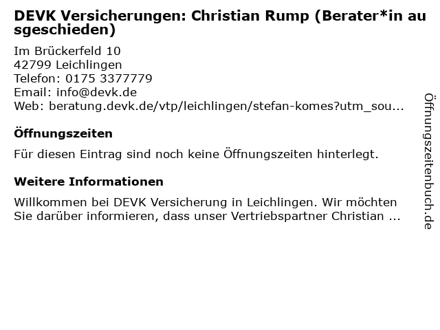 | DEVK Versicherungen: Christian Rump (Berater*in ausgeschieden) anrufen | |