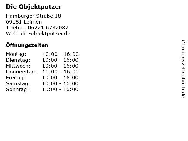 | Öffnungszeiten Die Objektputzer in Leimen anzeigen | |