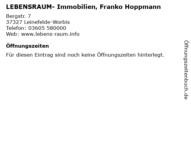 | LEBENSRAUM- Immobilien, Franko Hoppmann anrufen | |