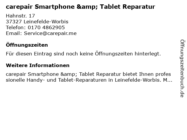 Öffnungszeiten carepair Smartphone & Tablet Reparatur