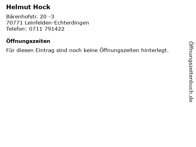 | Öffnungszeiten Helmut Hock in Leinfelden-Echterdingen anzeigen | |
