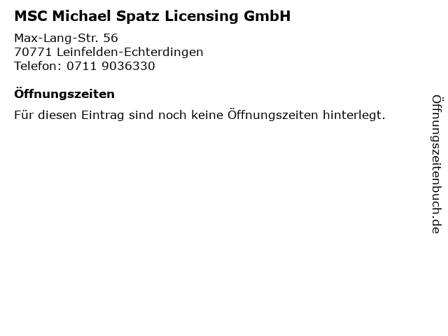 | MSC Michael Spatz Licensing GmbH anrufen | |