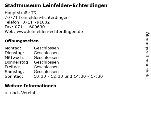 Branchen & Suchbegriffe zu Stadtmuseum Leinfelden-Echterdingen:echterdingen, freizeit, museum, nach, stadtmuseum, u., vereinb. |